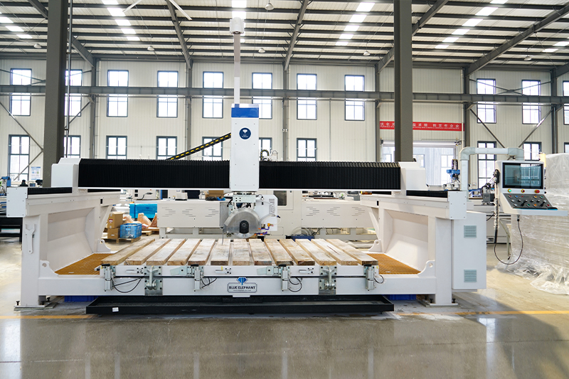 4+1数控桥切机可实现横切、竖切、斜角切割、菱形切割、圆形切割、椭圆切割、45°倒角、台下盆、台内盆切割等功能。